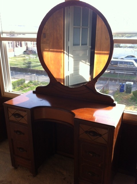Fortunately for me, since many houses of that time required dressers and wardrobes, there seems to be a lot out there to choose from. The craigslist g-ds must have been smiling down on me because I found a period dresser and vanity from the 1920s that I am completely loco about: