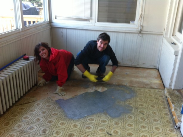 The sun room was carpeted, and as to be expected, was disgustingly stained and well damaged from the sun and foot traffic. I used it as the dumping ground for random construction materials and a staging area for most of the house projects. As such, it was basically the last room on the main floor that was given any attention.