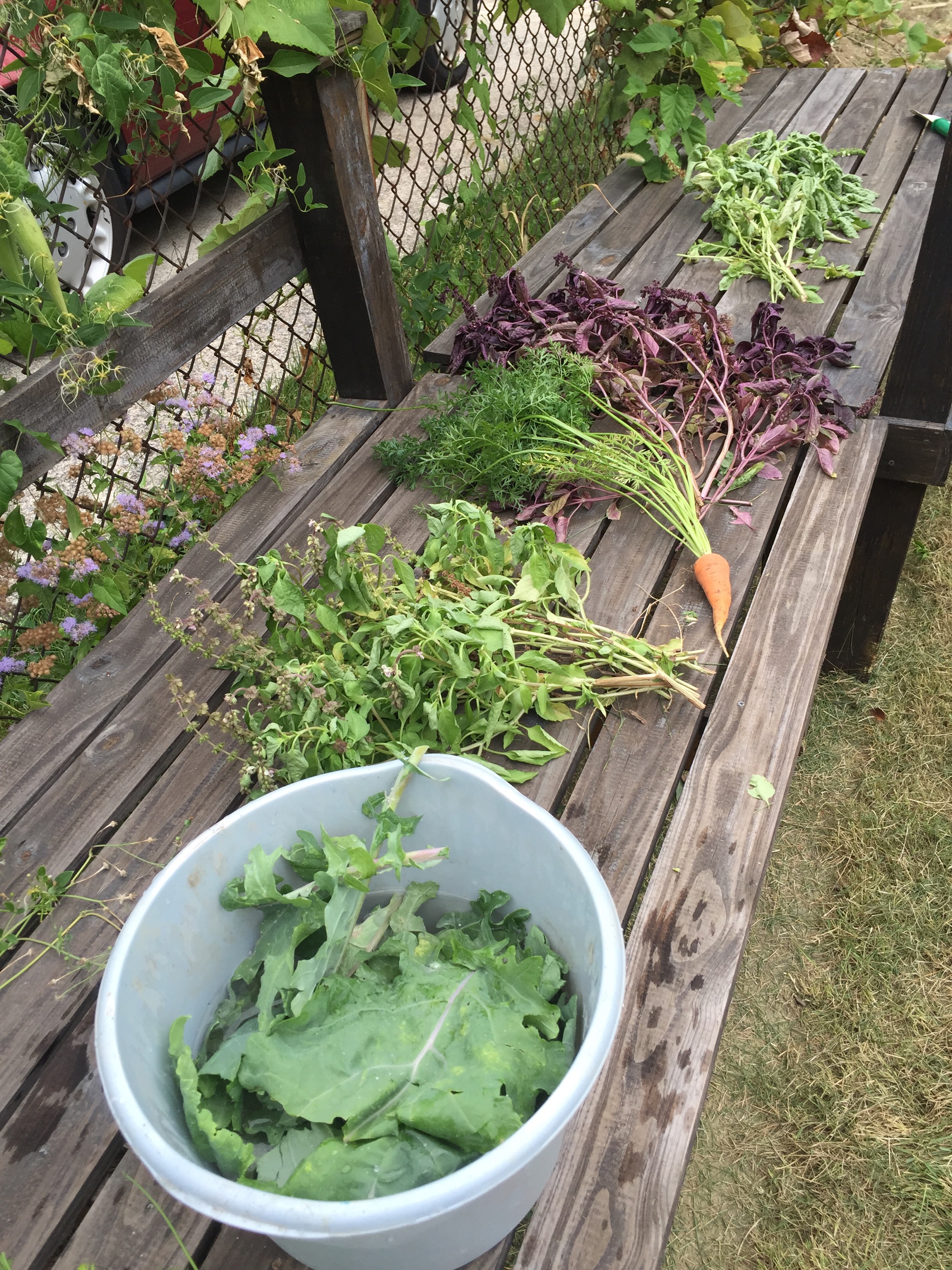Cleared out the basil – I had green, Thai and purple basil this year. And I planted carrots for Kaipua. Kale was the gift that kept on giving this season, but I think this should be the last yield for the year.