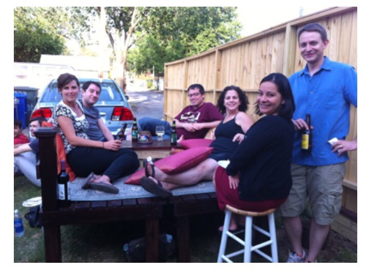 2 rocking chairs, 1 church pew (seats 2), 2 directors chairs, 2 black ikea folding chairs, 2 rattan folding chairs, 4 new folding lawn chairs, 6 vintage metal folding chairs, 2 stools, 6 dining room chairs, 2 living room chairs, and a sofa that seats 3. In the basement – a vintage beast of a couch that seats 3, an horsehair sofa that seats 3 and a love seat that can seat 2. In the backyard, I have 2 white plastic lawn chairs and 1 recliner. Are you keeping count? Because that’s 44 seats. And then there’s the tapchan. That seats 4 comfortably.