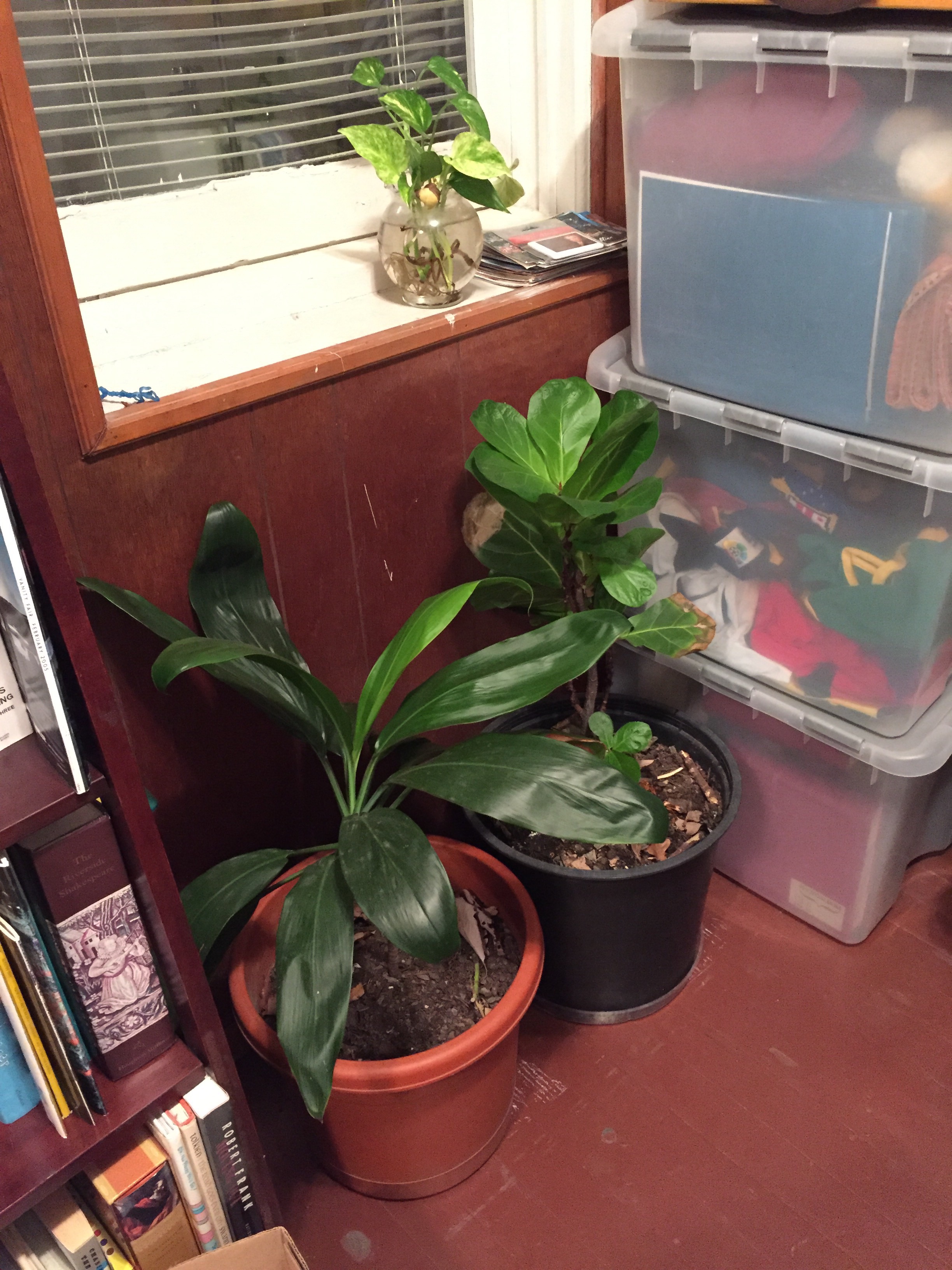 Another Ti Leaf from Kamaka, which keeps sprouting burls, effectively producing all my Christmas presents this year. And the old standbys – my ZZ and my poor Paddle Plant.